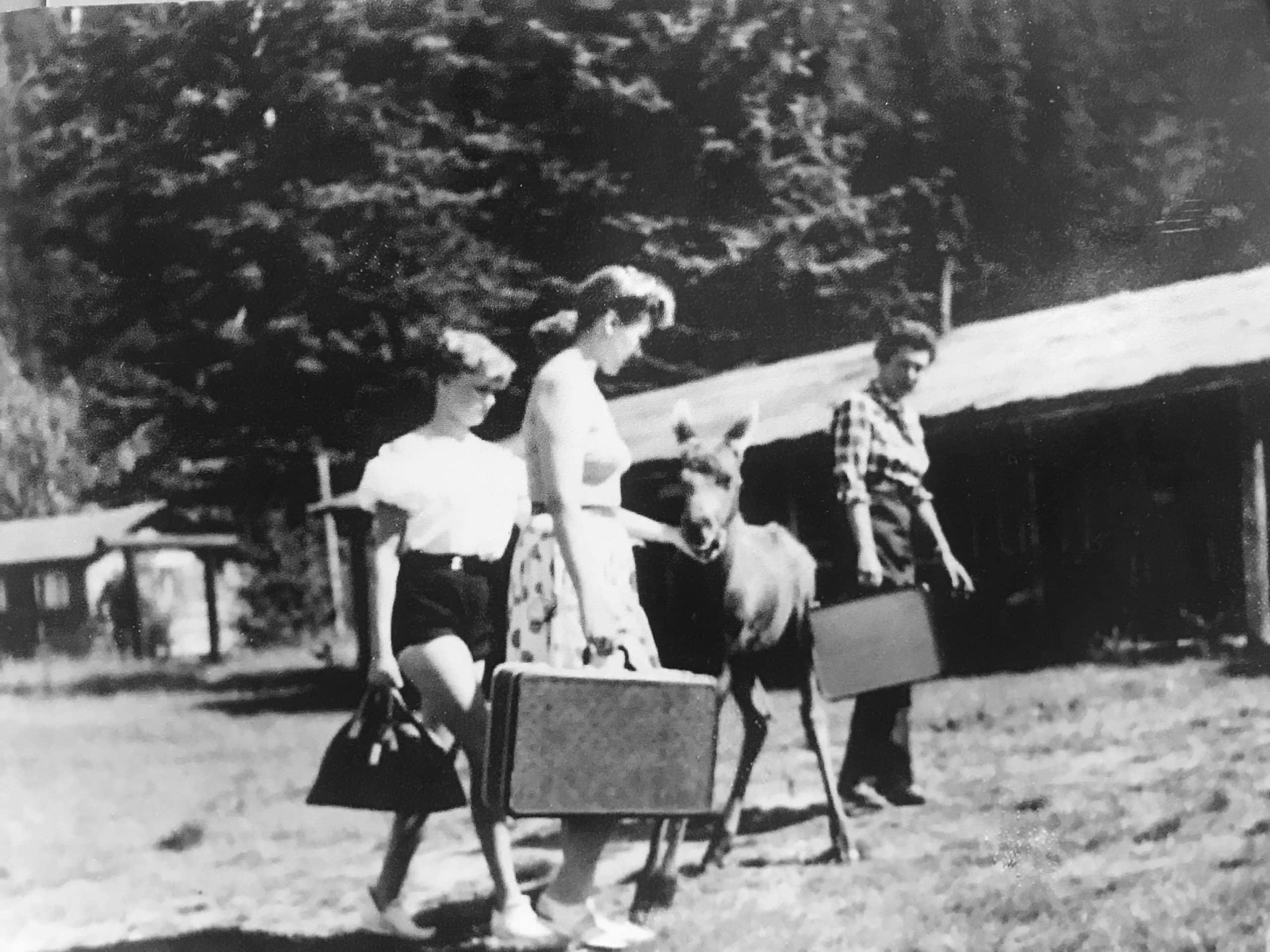 Once upon a summer, there comes a moose to the Taku Lodge. Mrs. Storfold was a Lodge manager during the 1950’s and her son recalls the days when a young calf became a part of the lodge family. A game warden, who lived in a cabin not far up river from the lodge rescued this abandoned moose and brought it to the lodge. The lodge family nursed it throughout the summer and named it Taku Tilly. She made a name for herself and even made it to the pages of Juneau’s newspaper.
